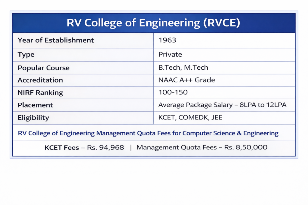 | RV College of Engineering (RVCE) | KCET + COMEDK |