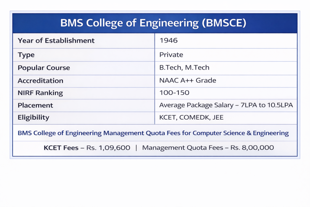 | BMS College of Engineering (BMSCE) | KCET + COMEDK |