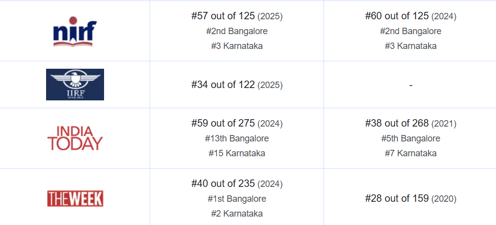 Christ University, Bangalore, is ranked by several ranking agencies, including NIRF, IIRF, and India Today. Some of these rankings are as follows-